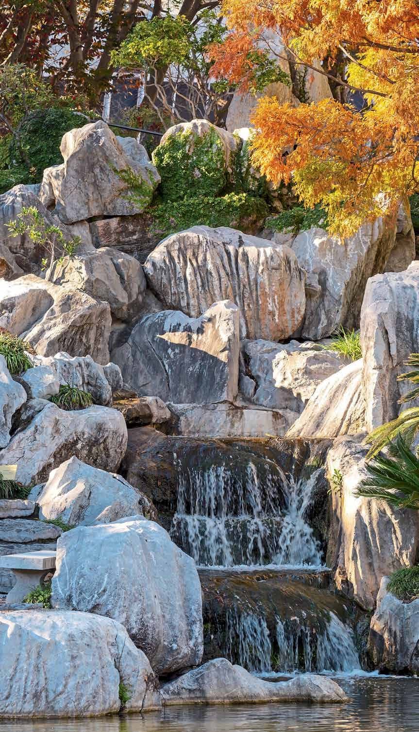 Just as you might include pieces of beautifully shaped driftwood in your backyard, Chinese gardens feature naturally formed rocks that are positioned to capture an image – here, a majestic dragon. Strong, jagged rocks emerging from smooth, so lakes is part of the Taoist principle of yin and yang – the balancing of opposites.