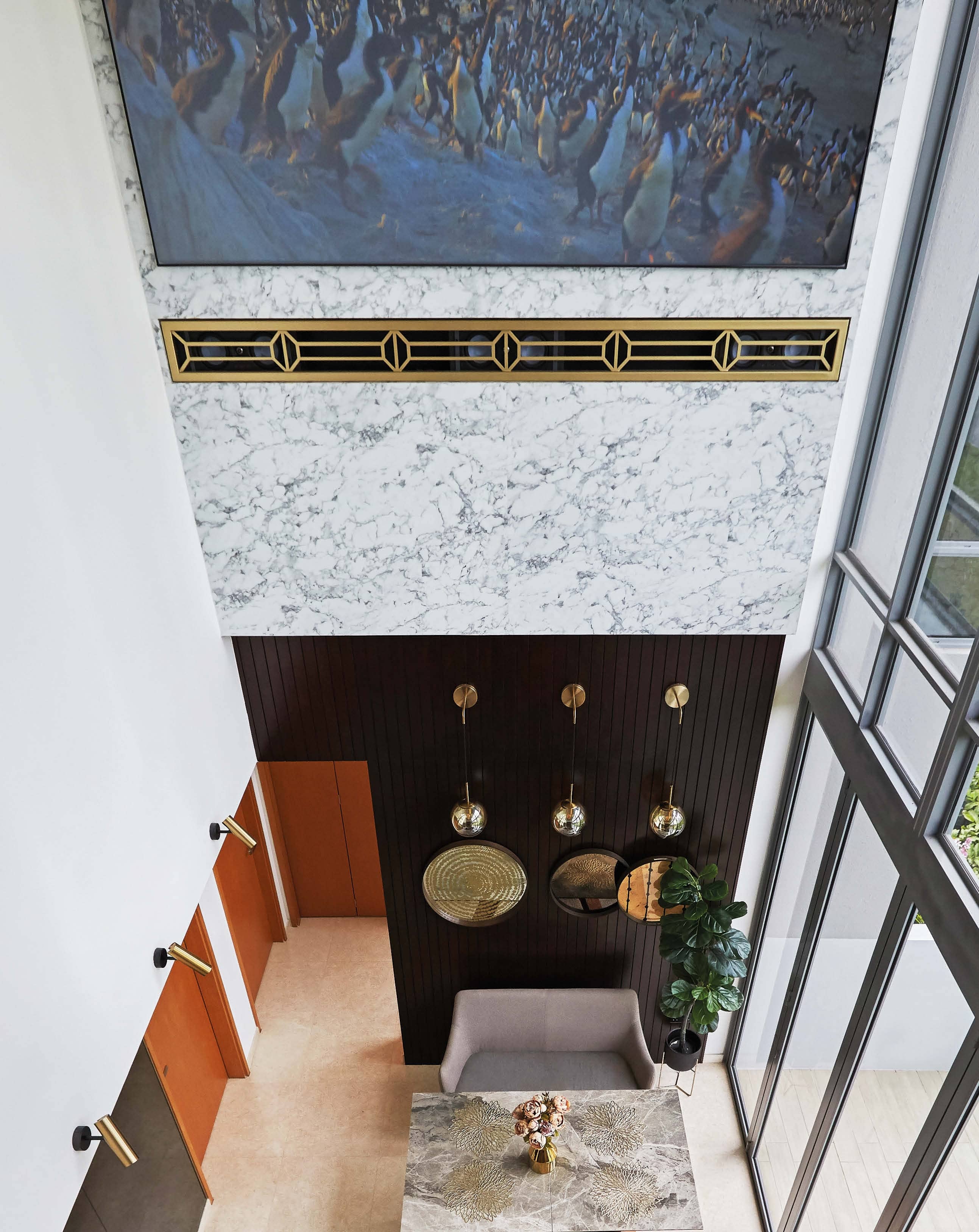 The couple has a preference for a modern luxe interior and Carmen has her take on this style. “Modern luxe is open to different interpretations. For Wolf Woof, it is never gold all over. Neither does it have to be dark and sombre. Ours is more of an understated luxury while exuding lushness, and this home is a classic example.”