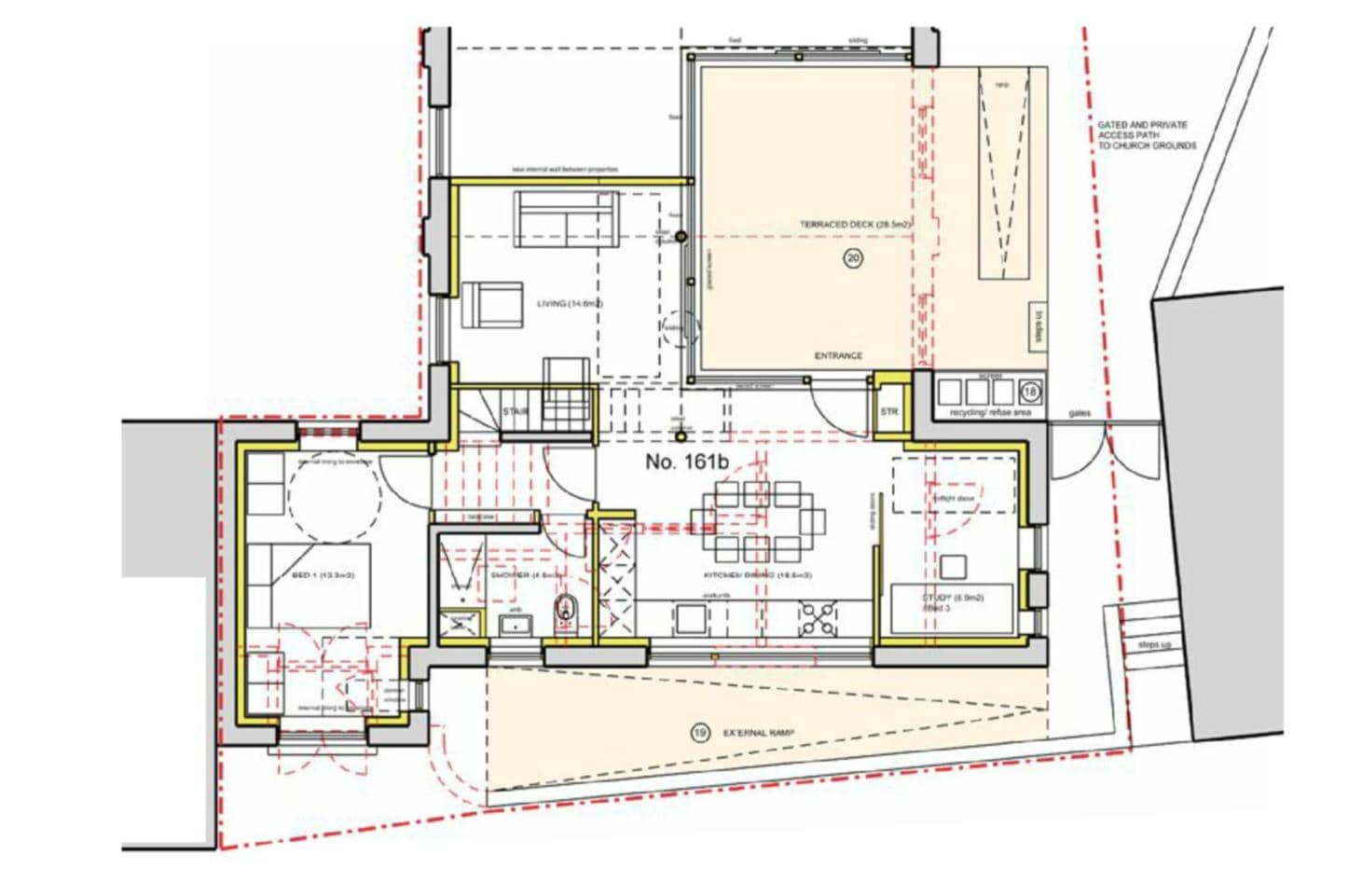 Ramp House was designed by Thea and Ian McMillan, of Chambers McMillan Architects, around the needs of their daughter Greta, a wheelchair user. Hamilton was impressed by how skilfully they’d incorporated accessibility into every part of their home. It started her thinking about what she could do with the 1930s church hall in Kelso that had belonged to her family for 25 years. It had served as the premises for their children’s nursery business, but had latterly been leased out as an art gallery and framing studio. “We’d always loved the place, but I knew it was time to give it an overhaul,” she recalls. “I realised that the cost of reroofing it as commercial premises would be more than the building was worth, though, so I tried to figure out how to give it – or at least part of it – a new lease of life as a rental property.”