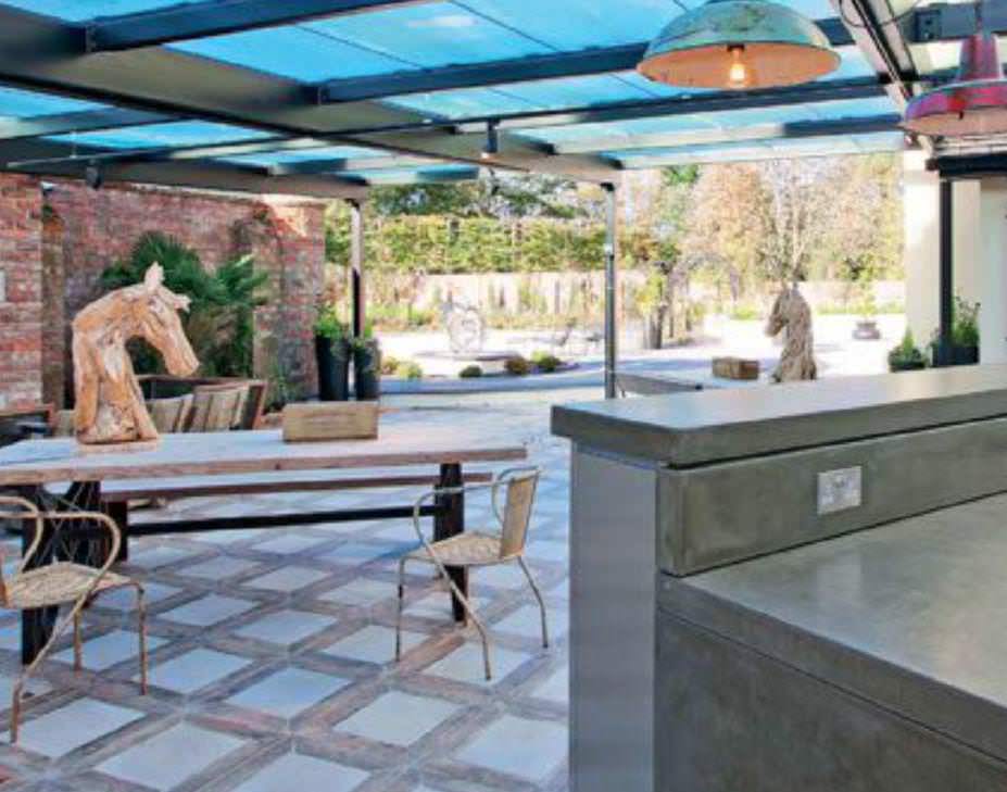 Designing and constructing the new addition, a spa/pool room with an external kitchen and lounge, was not a straightforward project by any means, but having permission to try something different resulted in an incredibly impressive and highly individual home.