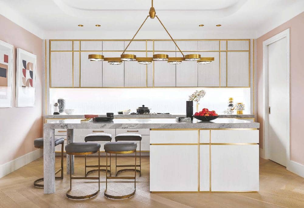 A custom bar area helps to set the tone and atmosphere when entertaining by allowing guests to congregate in one area and connect with each other. In this project designed by US design studio Alana Marie Interiors, the custom walnut bar also doubles as a privacy screen, helping to zone the space in a practical and elegant way. The slatted panels create beautiful storage nooks for glassware and bar accessories, demonstrating how form and function can be seamlessly integrated.
