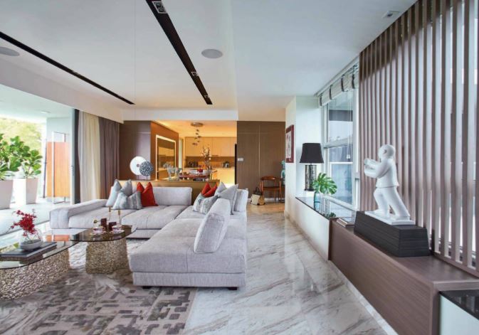 The brief to the design firm was straightforward: create a home with ample storage, a spacious entertaining area, and a bright and well-planned kitchen customised for the wife, who loves to bake. The owners have also amassed an array of Asian artworks and a colourful troupe of Bearbrick figurines, which were to be incorporated into the design of the 2,820sqft apartment.