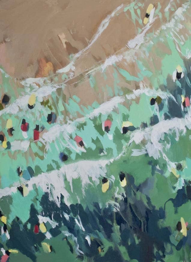 Based in her studio in Rock, Nina’s colorful, abstracted aerial beach scenes capture the essence and energy of sea and surf culture in Cornwall and beyond.