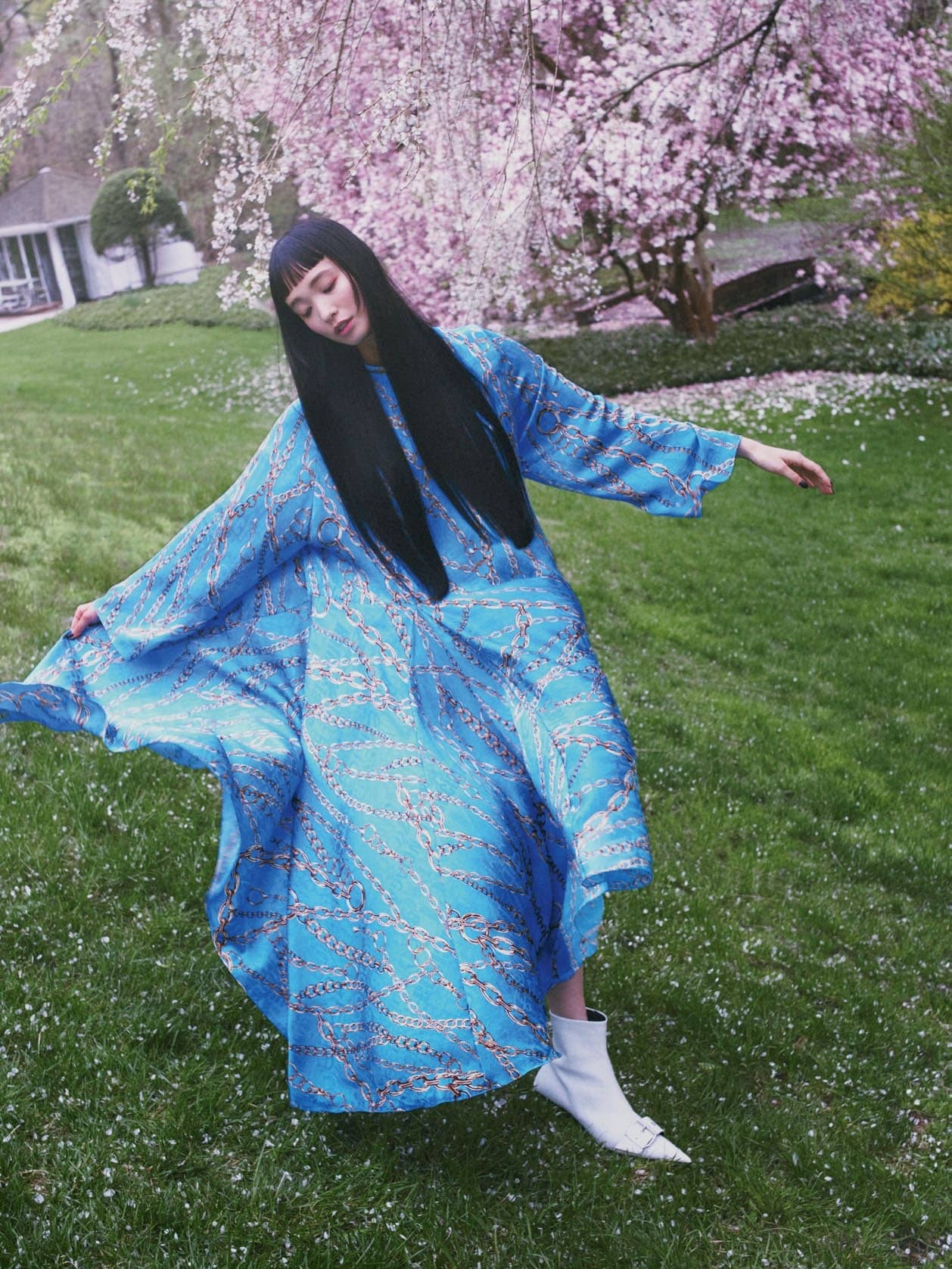 In between shooting this month’s fashion spread and cover, which involved a pretty diverse crew flying in from different parts of the world in order to make it happen, Yuka moved around the private property in Greenwich, New York, feeling completely at ease – even with the owner’s pets roaming around freely, one of which really warmed up to her and can be spotted in the seventh look of this story giving our star of the day a friendly boop.