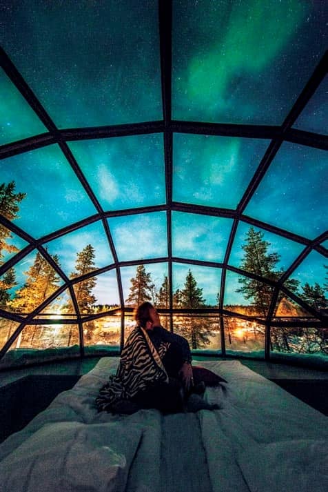 One of the many reasons to visit this chilly yet magical land is to witness the incredible spectacle of the northern lights, frequently seen painting themselves across the Arctic sky—particularly in Lapland, where they’re visible roughly 200 days a year. Those wanting to witness the aurorae often turn to winter sports like snowshoeing, cross-country skiing, and sled dog touring, all of which allow visitors to get somewhere they can spend a night gazing at the sky, and maybe even get in a good workout at the same time.