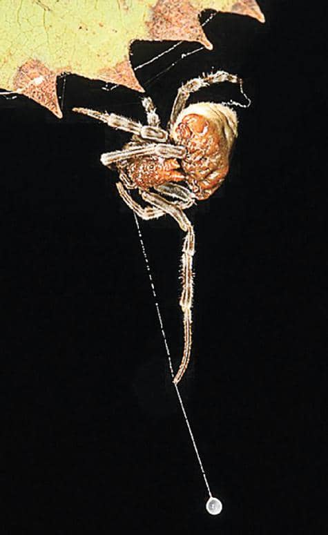 Posadas en las ramas o las hojas, las arañas bola, del género Mastophora, parecen estar pescando. Su innovadora táctica consiste en producir una larga baba de seda pegajosa en forma de fino hilo para atrapar las polillas que chocan contra ella. La arena tensa la cuerda en el momento exacto para que la trampa se enrede en las alas del insecto, momento que la araña aprovecha para atacar. Estas arañas reciben el apelativo de bola porque recuerdan a un arma de caza arrojadiza que utilizaban los gauchos, que eran las llamadas boleadoras, que contaban con dos o tres esferas de piedra unidas por unas tiras de cuero o tientos.