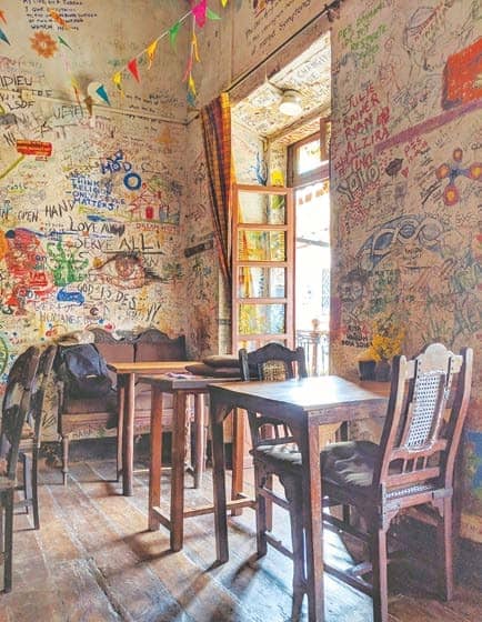 Hospedaria Venite on Rua 31 de Janeiro in São Tomé in Panjim, isn’t your average tourist attraction. It is a meeting place for many a local that knows of the secret delights the venue houses and the tourist that chooses to tread off the beaten path. Venite has always served as an example of a very satisfactory gastronomic end product. The food that is dished out by proprietor Luis de Souza and his merry band of helping hands always hits the spot. Luis is the man who makes the restaurant however, and if one is really fortunate, during the sweltering heat of the mango season, one can share a seat with him in the restaurants quaint window seats and listen to his banter about all affairs Goan, ranging from politics to local good-to-know gossip. For those who dare to leave behind their sentiments, these walls serve as a little piece of history, a recording of a certain moment in time, that immortalises the given state of a writer and the time he yielded his weapon of choice, be it marker, paintbrush, pen or my personally preferred choice, colour pencil.