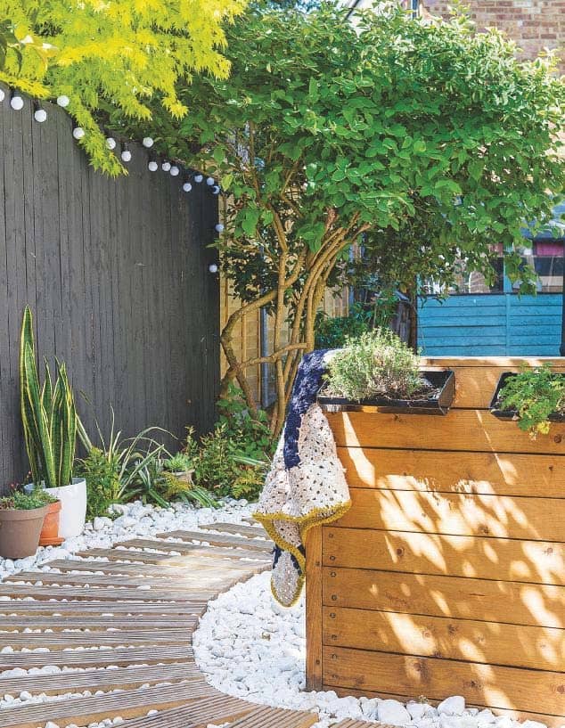 Before we moved into our 1970s house, it had only had one owner – the whole house was in desperate need of updating,’ says Heather. ‘So that’s what we focused on first, which meant that the garden was largely forgotten. It was depressing to look out of the patio doors onto the side area and see weeds and mess.