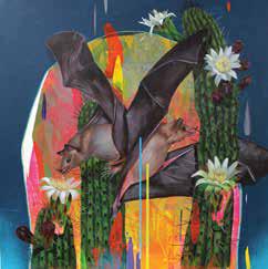Taking place in the Arizona-Sonora Desert Museum’s Baldwin Gallery through October 30, Hijo del Sol showcases Gonzales’ love of the Sonoran Desert through a selection of his imaginative, eyepopping paintings. Rooted in the organic, natural world, his work often realistically depicts birds and plant life offset by splashes of paint and colors that don’t exist in nature.