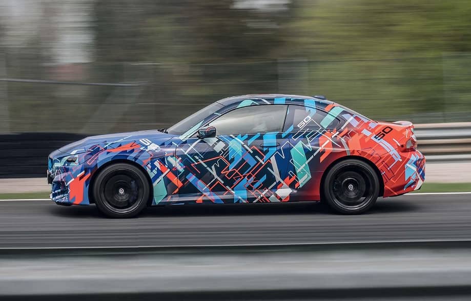 THE STARTING formation on the makeshift grid is an odd mix of almost new and ostentatiously unfinished metal. The pair of thinly disguised M2 pre-production cars – one manual and one automatic – is led by a hyper blue M4 Competition with Dirk Hacker, chief engineer of the BMW M division, at the wheel. I am right behind him in the lairier of the two M2s which wears a psychedelic multi-blue, multipattern livery. In the rear-view mirror, the other M2 looms large, LED lights on, dressed in the brands generic swirly trompe l´oeil shrinkwrap which reveals more than it hides as soon as your eyes have sussed out how to separate shapes from surfaces.