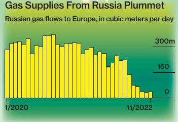 As 2023 begins, pipeline supplies of gas to Europe have plunged because of the closure of Russia’s Nord Stream network and could halt entirely if a remaining line through Ukraine is shut off.