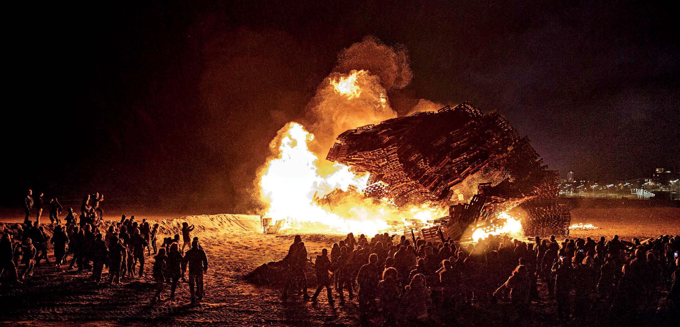 IN FRONT OF A MASSIVE BONFIRE