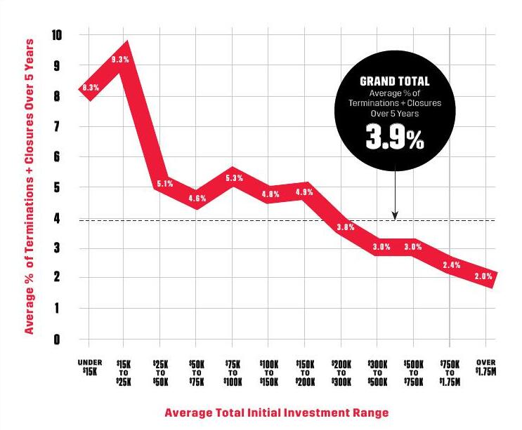 We took five years' worth of data, and then analyzed it in slices. What we found were some curious statistical anomalies: Failure rates change depending on how much a franchise costs to buy! Franchise fees are up in some places, down in others! Some categories are thriving, and others are coasting!