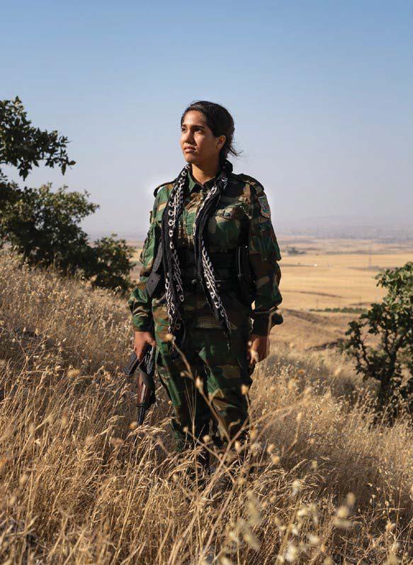 La escena tiene lugar en el Kurdistán iraquí occidental, a pocos kilómetros de la frontera entre Irak e Irán. En una ladera rocosa, unas cincuenta jóvenes de unos 20 años ensayan un ejercicio de tiro con Kalashnikovs colgados al hombro. Aprietan las mandíbulas bajo un calor sofocante: esa tarde, el termómetro marcaba 47 °C. Sus ejercicios militares contrastan con el bucólico paisaje en el que trabajan: un mar de hierba amarilleada por el sol y grupos de olivos al fondo. Bajo las firmes órdenes de su comandante, los peshmergas, los que se enfrentan a la muerte, repiten incansablemente los mismos gestos. No importa que estén empapados bajo sus chalecos antibalas, armados con cargadores y cuchillos.