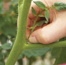 MATCH THE SUPPORT TO THE PLANT There are two types of tomatoes: determinate and indeterminate. Determinate tomatoes are compact bush-type plants that stop growing at a certain height; fruits mature at the same time for a single harvest. Indeterminate tomatoes are tall vining plants with no determined height, so they keep growing throughout the season and produce fruits that mature at different times. The kind of support to provide your plants depends on what type of tomato you’re growing. Check the seed packet or plant label to see if it is determinate or indeterminate. Cages and stakes that are 3 to 4 feet tall are perfect for determinate tomatoes, while indeterminate types require support 5 to 7 feet tall or higher.