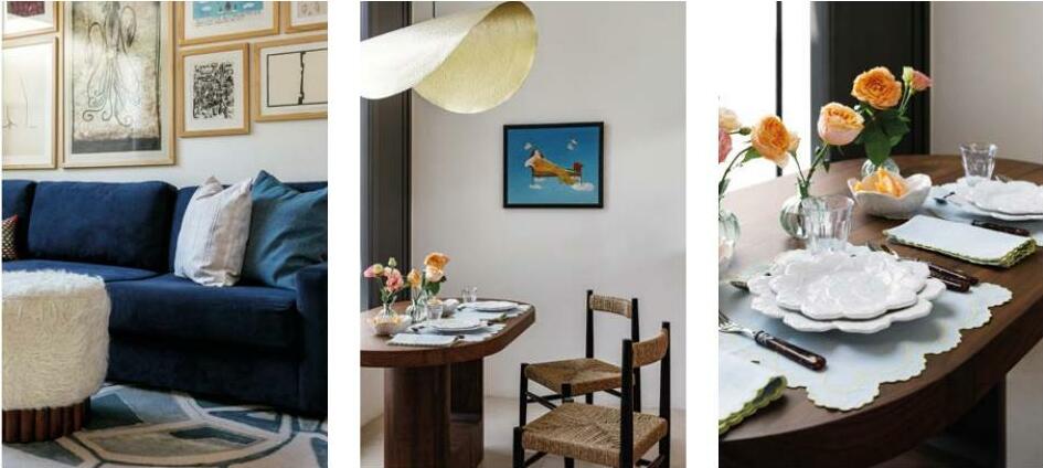 EI arte abunda en cada habitación del departamento, debido a que los dueños son coleccionistas de arte. Por ello, el departamento está dividido en dos niveles; se entra por la planta alta, donde se encuentra sala, comedor, cocina y una amplia terraza con vista hacia la Roma Norte. Bajando unas escaleras se encuentra el área privada del departamento donde hay tres recámaras con sus respectivos baños como también una sala de TV/FamilyRoom.
