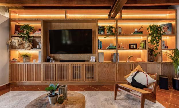Los espacios de la casa están definidos por tonalidades neutras y acabados en madera que agregan calidez profunda al hogar.