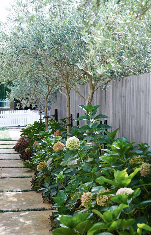 Hydrangeas love afternoon shade and thrive under the dapple of olive trees. The flowering balls of the Hydrangea 'Ne Plus Ultra' (which means 'the best of its kind'!) open white in spring, then turn pink and eventually age to green.