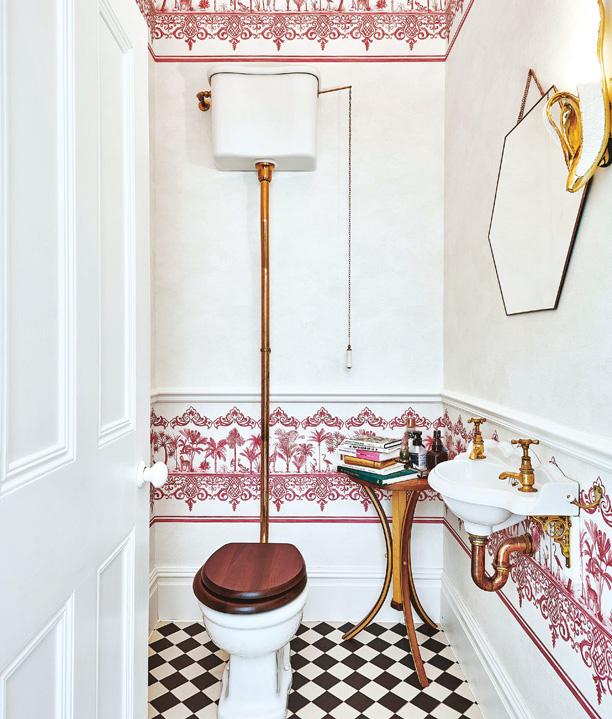 Use textiles to bring cosiness to a small cloakroom. In this comforting understairs space, designer Beata Heuman has gone all in with walls and treads covered in her owndesign cotton linen, which is paperbacked so that it can be applied like regular wallpaper. A crisp white vintage cotton curtain under the basin continues the textile journey and delivers a visual rest from the floor-to-ceiling pattern. Willow linen wallpaper in Ink, £150lin m, Shoppa by Beata Heuman.