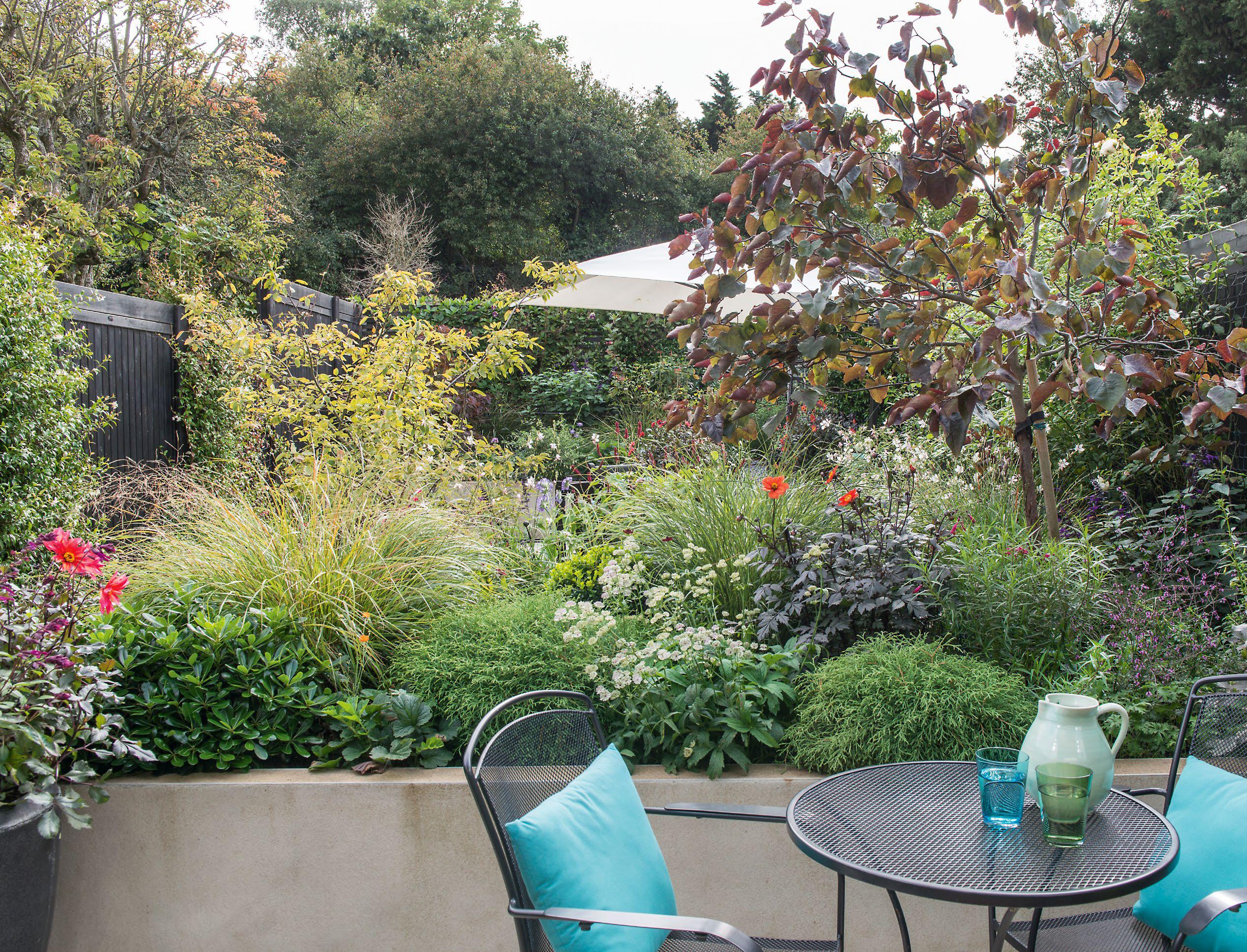 Using clever design and planting, Pauline has transformed a blank canvas into an elegant, contemporary garden complete with social spaces, a cutting patch and a pond