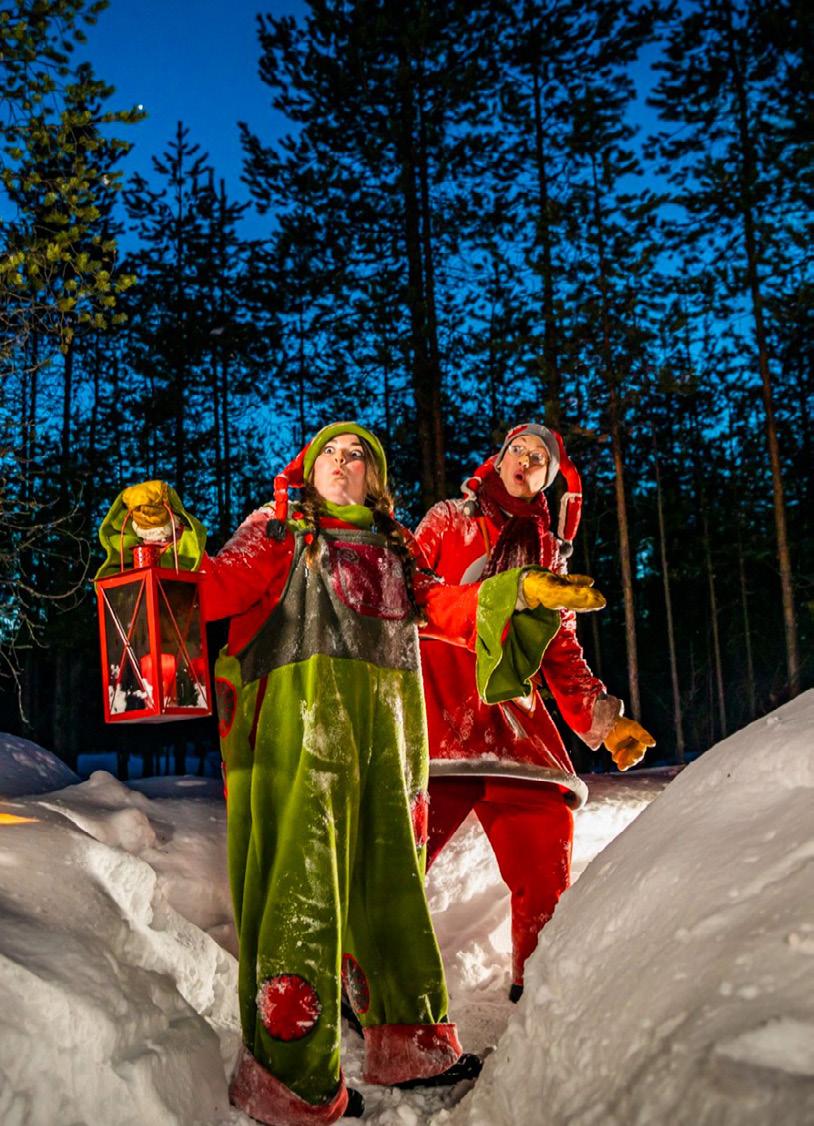 Estoy en el Bosque Secreto de Papá Noel Joulukka, en finés- un lugar que no aparece en ningún mapa y donde los visitantes son bienvenidos solo con cita previa. La noche es tan oscura y con niebla que me siento en el interior de un mitón. Las velas en la nieve y las agudas voces de los elfos que cortan el aire frío son mis únicas guías.