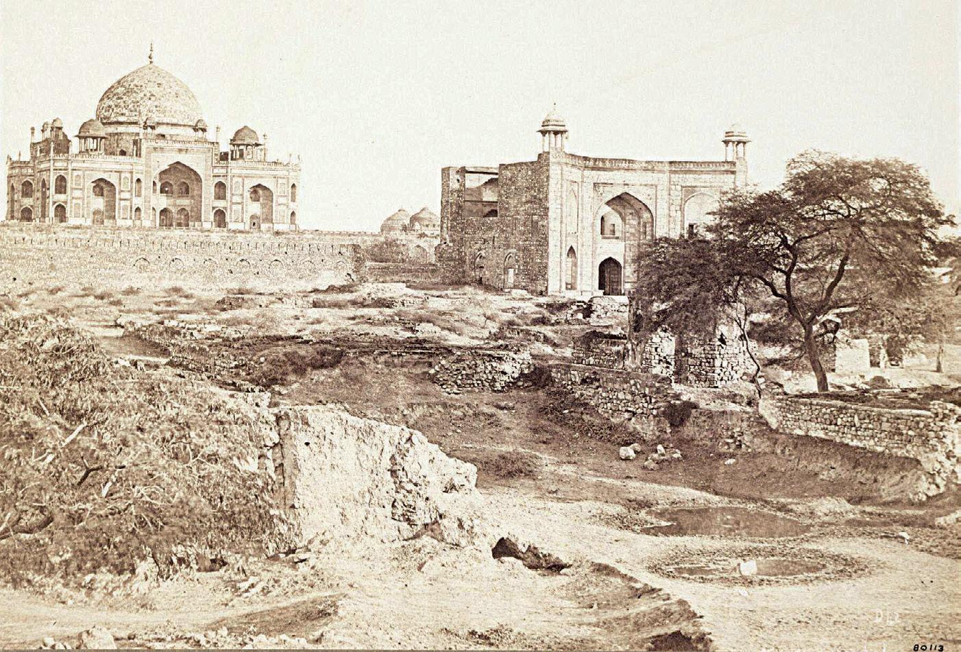 The tomb of Humayun, photographed around 1857 by Felice Beato; (below) a miniature painting of Humayun by Payag, c. 1650