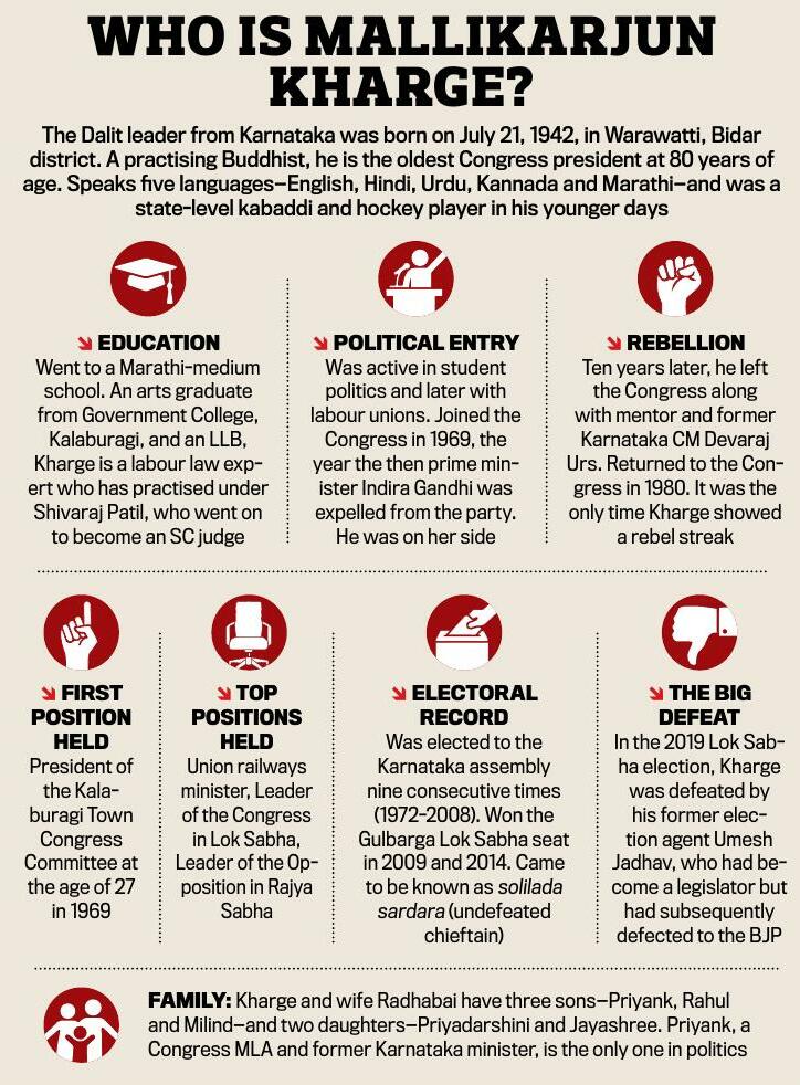 MALLIKARJUN KHARGE, 80, THE FIRST DALIT PRESIDENT CONGRESS HAS HAD IN 50 YEARS, TAKES OVER AT A TIME WHEN THE PARTY IS DESPERATE FOR A REVIVAL. CAN HE RISE TO THE CHALLENGE?