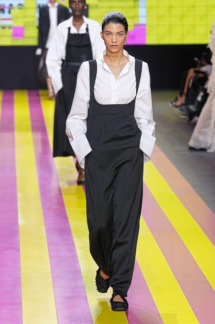 The collection was unveiled in front of a video installation by artist Elena Bellantoni, entitled Not Her. Screens featured collage imagery which, in Chiuri's words, "seek to question the responsibilities of images in creating and enforcing stereotypical narratives around femininity and womanhood."