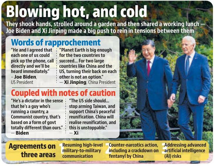 US President Joe Biden and his Chinese counterpart Xi Jinping emerged from their first meeting in a year betting that a handful of small victories will arrest a surge in US-China tensions that has unnerved neighbouring nations and threatened global economic growth.