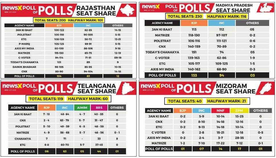 Before the voting on December 3, exit polls conducted by various agencies on Thursday evening revealed possible outcomes for BJP, Congress, and other parties. As Chhattisgarh and Madhya Pradesh are having elections first, most agencies have worked on exit polls there and attempted to provide analysis.