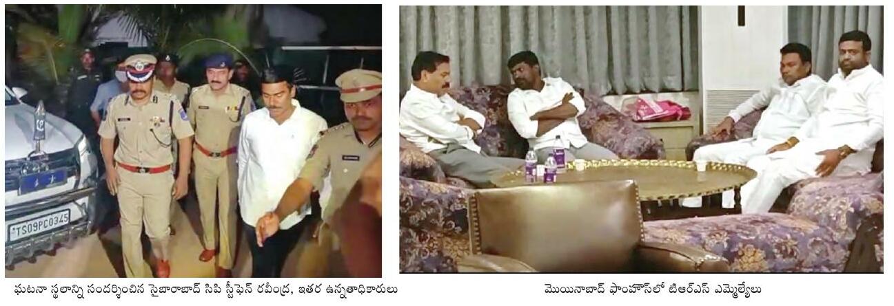 మునుగోడు ఎన్నికల వేళ..టిఆర్ఎస్ ఎమ్మెల్యేలను కొనుగోలు చేసేందుకు కుట్ర? మొయినాబాద్ ఫాంహౌస్ పై పోలీసుల మెరుపు దాడి నందకుమార్, సింహయాజులు, రామచంద్ర భారతి అరెస్టు రూ.15 కోట్ల నగదు జప్తు పట్టుబడిన ముగ్గురూ బిజెపి వారేనంటున్న టిఆర్ఎస్ నేతలు పార్టీ ఫిరాయిస్తే పదవులు, డబ్బు, కాంట్రాక్టులిస్తామంటూ ప్రలోభపెట్టారని ఆరోపణలు వివరాలు వెల్లడించిన సైబరాబాద్ కమిషనర్ స్టీఫెన్ రవీంద్ర