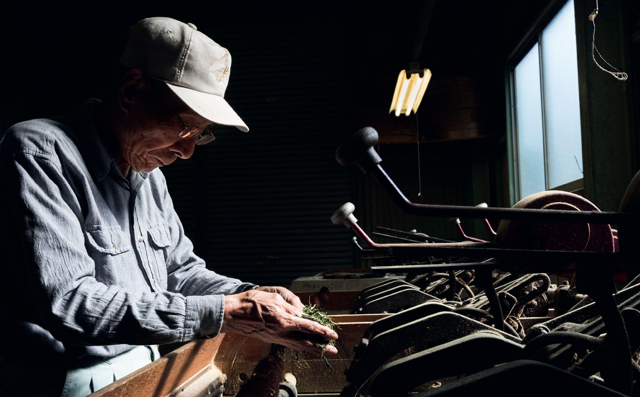 From Chapter 7, Style. An elderly Japanese worker in a traditional tea factory, whose face is lit only by reflections from his shirt.