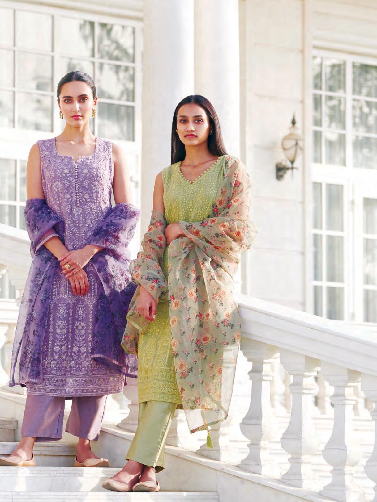চিকনকারি এক আশ্চর্য নান্দনিকতার স্পর্শ এনে দেয় আপনার সাজে। চিকন কাজের দুটি সালোয়ার কামিজে বাড়তি গ্ল্যামার এনেছে ফুলেল নকশার দুপাট্টা।