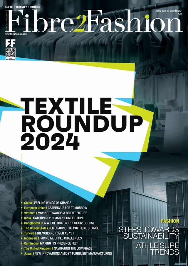 The December 2024 edition of Fibre2Fashion magazine serves as a thoughtful culmination of the year, capturing the defining moments and key transformations across the global textile and fashion industries. This edition explores how key regions navigated the year's challenges while seizing opportunities for growth. In addition to regular segments, it includes an analysis of sustainability strides and athleisure trends, making it an essential read.