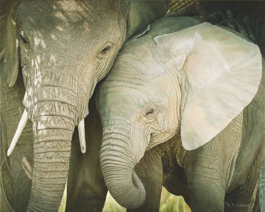 “Through my art, I try to evoke your emotion for wildlife and our natural world...I seek out worthy programs to use my abilities to raise awareness and much-needed funds,” says wildlife artist Bruce K. Lawes, whose work is collected internationally. “I use my storytelling to attract people to the love of our natural world, where they too may protect it, and keep it safe, for the generations that follow.” He adds, “As my friend, Dr. Jane Goodall said to me, ‘Only if we care, will we help.’”