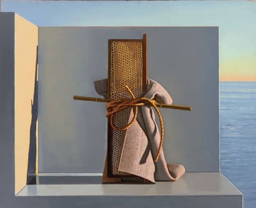 Frank Oriti first came to fame painting portraits of his peers who had left their native Cleveland and “returned to places we attempted to escape.” He has moved “beyond portraits and figure paintings in the last five years, painting denim, leather jackets and sneakers that have all made me realize how I look and how I study things when I go about painting them. Making sure they are centrally placed, being able to control soft and hard edges, and the overall form that these objects take are all worthy of close inspection during the painting process.”
