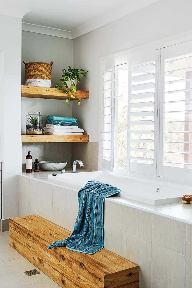 Both freestanding and inset baths can look fabulous with the right treatment. A freestanding bath is a style asset, but it needs room to breathe; a minimum of 10-15cm of space around it, says Marc Reed of Candana. For tapware, a floor-mounted spout will take up more space around a freestanding bath, although the payoff is a sense of luxury. If you have room, make your freestanding bath shine by placing it centre stage. “By positioning the tub beneath a window, you can create a natural day spa feeling,” says Daniela Santilli of Reece. Built-in baths tend to be more modest than a freestanding tub, but they can be just as gorgeous. “I love an inset bath to be under-mounted,” says Marc. “Have a stone surround that sits above the bath and gives a really practical working space. Also, a niche adds depth and shadow lines in the walls.”