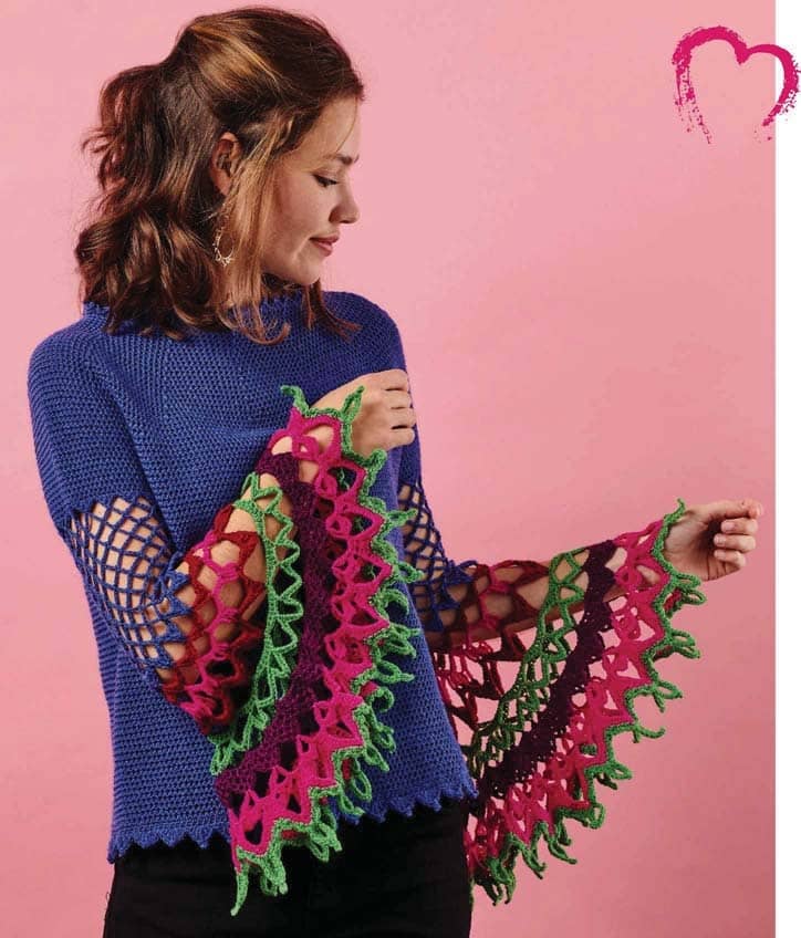 The show-stopping sleeves on this design by Bowie and George are a call to arms to adventurous hooksters