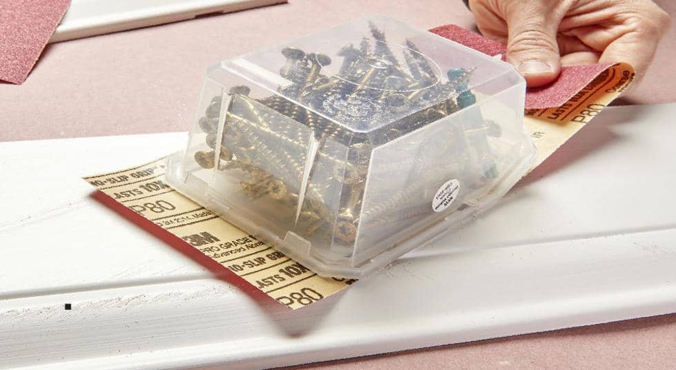My trim takes some abuse from my kids. It’s no fun sanding and repainting when it gets dinged up. I tested the toughness of the finish by dragging a piece of 80-grit sandpaper weighted with 1-lb. boxes of screws across it. The toughest paints took the punishment with only light scuffing.