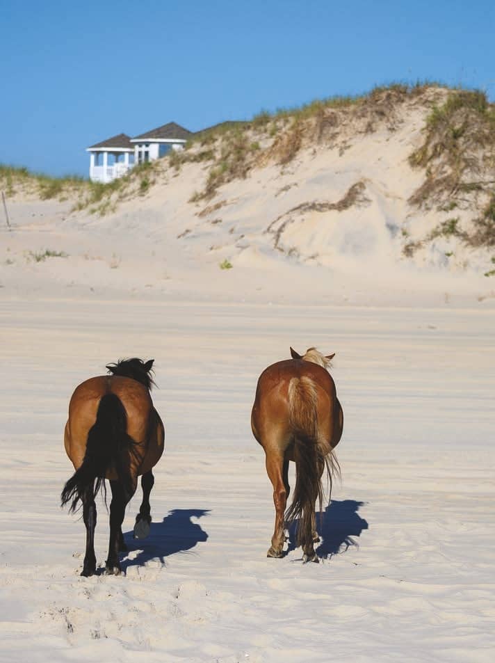 Descendants of herds brought to these shores by Spanish explorers dating back to the 1500s, the wild horses of Corolla on North Carolina’s Outer Banks make the sandy beaches of this attractive coastal community their home.