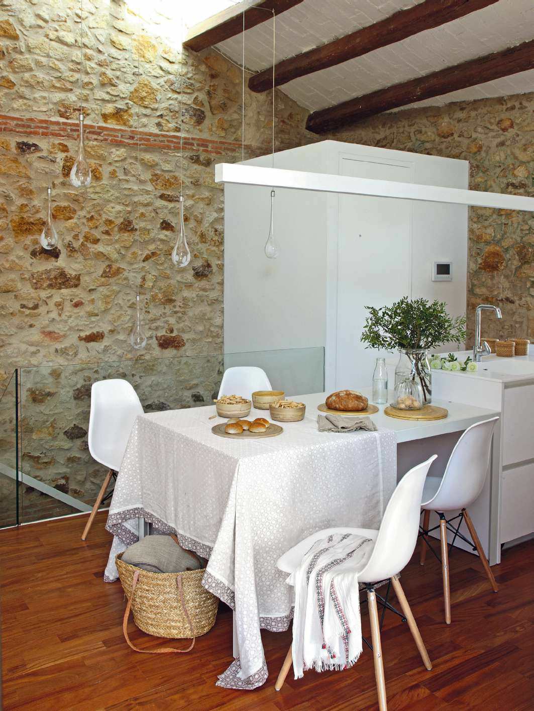 En Pals, un pueblo del Bajo Ampurdán gerundense, se encuentra esta casa —construida en 1900 y siempre utilizada como granero y almacén— que ahora estrena una distribución peculiar y un interiorismo impecable, que conjuga los muros de piedra y las vigas originales, con diseños depurados y actuales. La transformación es una obra de la arquitecta Glòria Duran Torrellas, llevada a cabo por la promotora Cases Singulares de l’Empordà. En la planta baja se ubican la entrada, dos dormitorios, un baño, una habitación polivalente y el garaje. Pero es en la primera planta, a la que se accede a través de una escalera de baranda transparente, donde el proyecto sorprende por su originalidad.