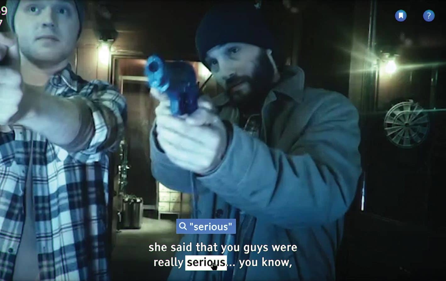 As you search the database you’ll see clips of a father reading his daughter a bedtime story, a couple watching a movie together, and other snippets of people just living their lives. But then you’ll hear something that piques your curiosity. A reference to a mysterious incident, a name, or a place. And you’ll search for these things in the database, unravelling yet more intriguing threads, slowly revealing an intricate, labyrinthine story that takes place across two years.