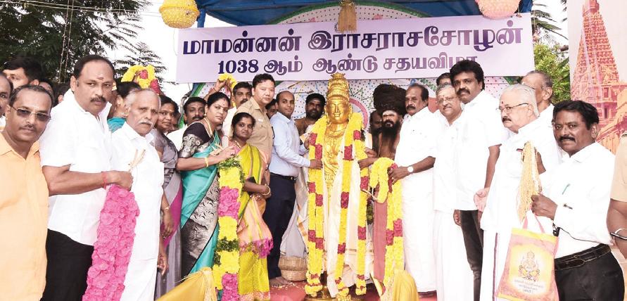 தஞ்சாவூா் பெரியகோயிலில் புதன்கிழமை நடைபெற்ற மாமன்னன் ராஜராஜ சோழனின் 1,038-ஆவது சதய விழாவில் அவரது சிலைக்கு ஏராளமானோா் மாலை அணிவித்து மரியாதை செலுத்தினா்.