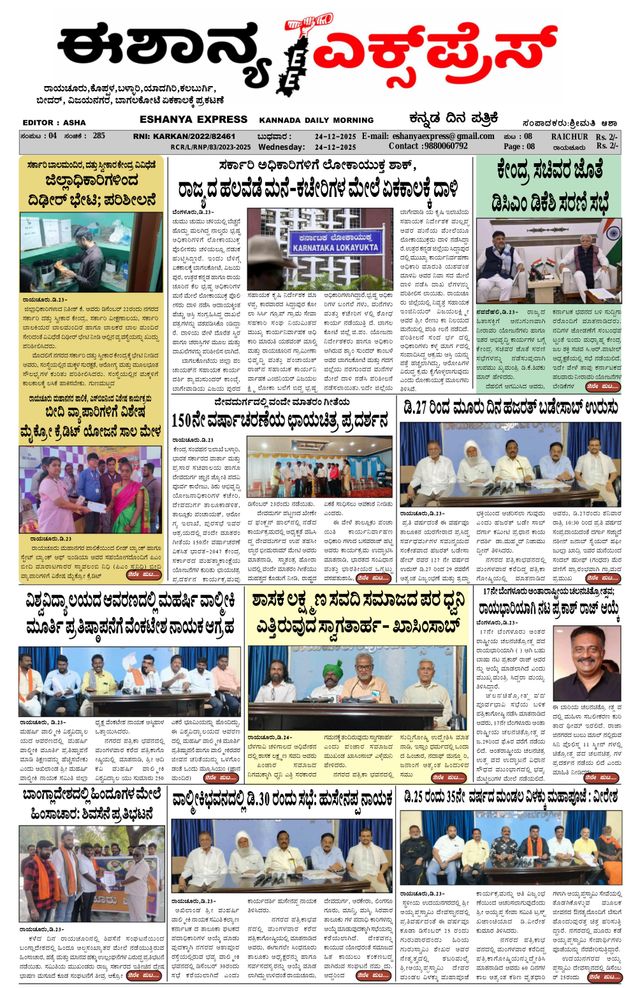 Eshanya Express Kannada daily morning newspaper publishing at Raichur.