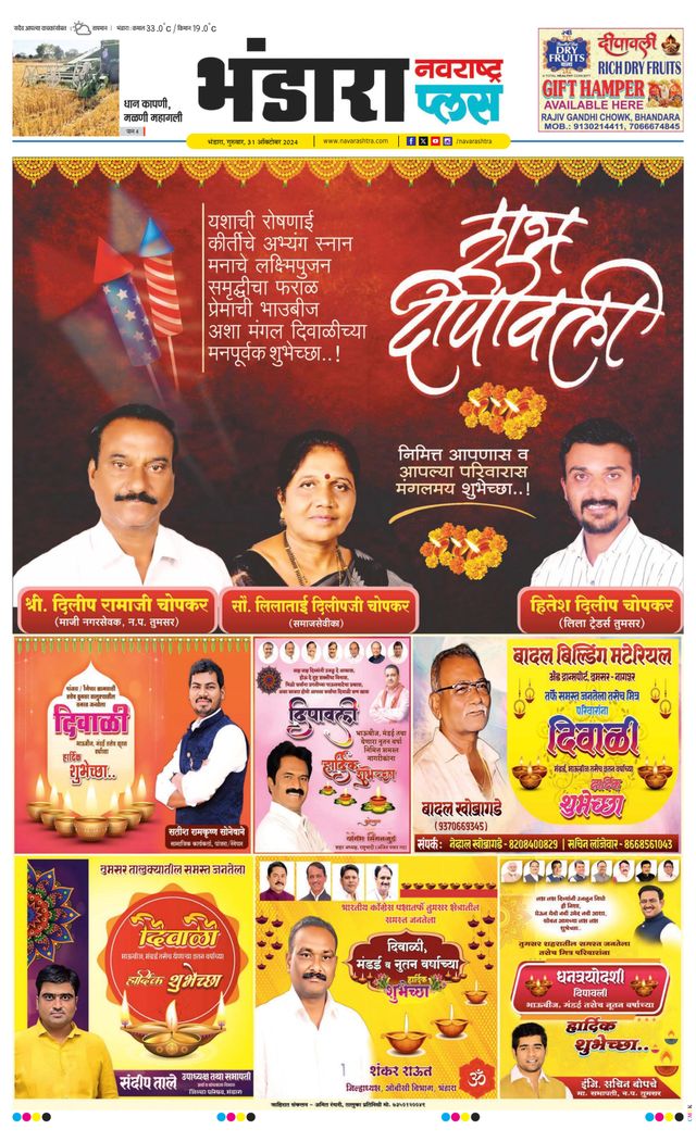 NavaRashtra is an Indian Marathi-language daily with a presence in 14 cities across the Indian states of Maharashtra, Madhya Pradesh, and Chattisgarh. Owned by Ram Gopal Investments Pvt. Ltd. and published by the Navabharat Group, the Navabharat newspaper was founded by Ramgopal Maheshwari, a freedom fighter and journalist, in 1934 in the city of Nagpur in Maharashtra. Published with the intent of upholding value-based journalism and providing a platform for people of the region to voice their problems, the Navabharat newspaper has always strived for India’s development along with the reporting of fact-based news. In Maharashtra, Navabharat publishes 6 main editions (Nagpur, Pune, Mumbai, Chandrapur, Nasik and Amravati), and 3 additional editions (Yavatmal, Akola and Wardha).
