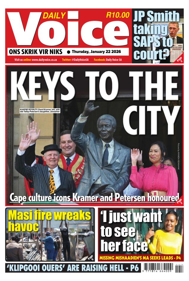 The Daily Voice is a Cape tabloid newspaper that captures the life of working class communities. We speak the people’s language, tell the people’s stories and champion the people’s issues by giving a voice to the voiceless. You can find the Daily Voice in a taxi on the Cape Flats, on a factory floor, under a housewife’s arm, or on a student’s smartphone. We deliver a unique brand of news that is both informative and entertaining, and our outrageous headlines are what make the Daily Voice the most-read newspaper in the Cape Town metropolitan. The Daily Voice is predominantly available in Cape Town, but is also sold in the Western Cape’s Boland, West Coast and Overberg regions.