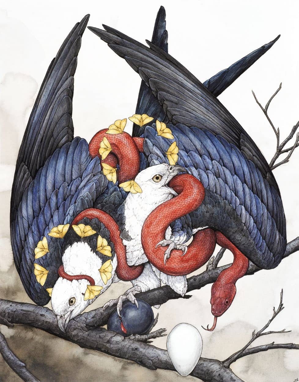 A hundred years later, artists draw from mythological stories of wildlife, scientific discoveries and their own conscious and subconscious experiences to create their work—perhaps reforming some of those connections or causing viewers to make their own.