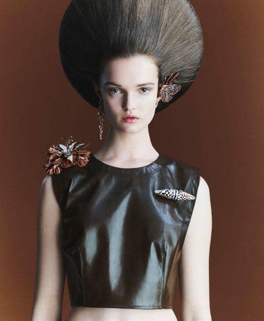 In the hands of Prada, a seemingly classic 1950s-style dress is given a precisely raw, wild side