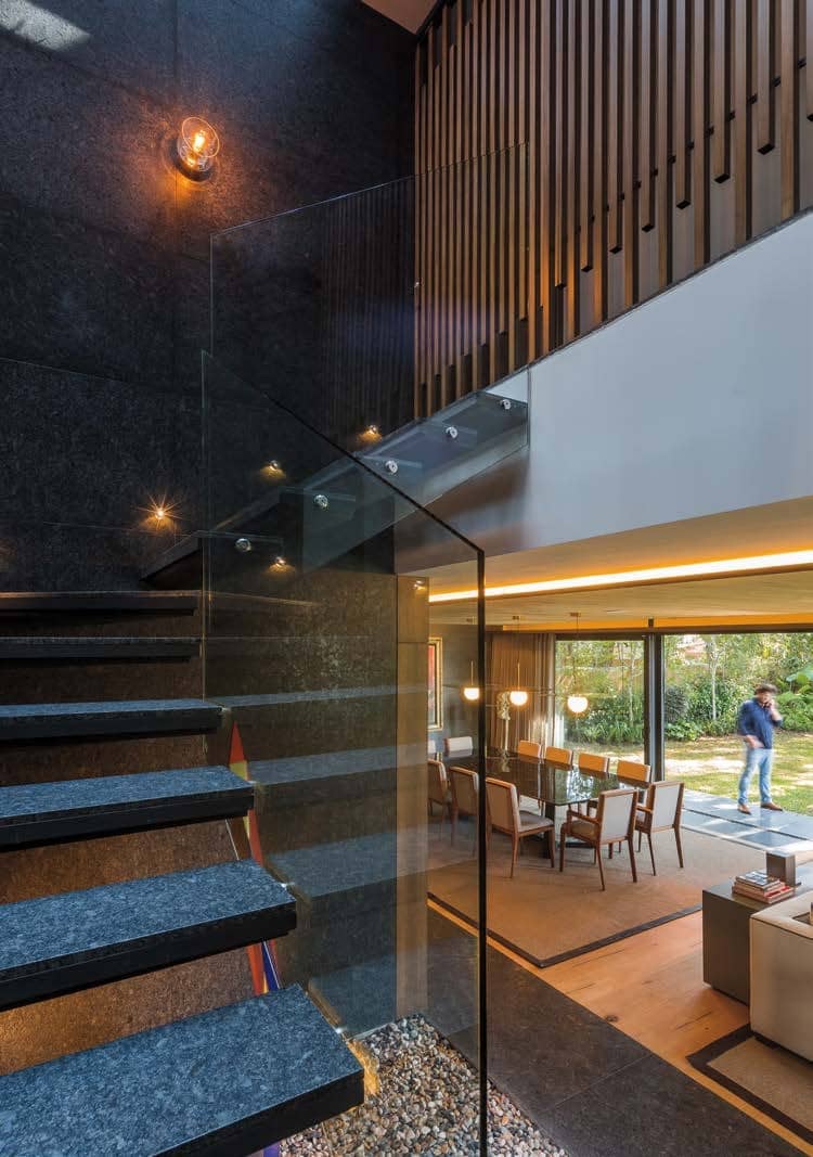Con una gran ventana corrediza en la planta baja de la casa se dividen espacios y, de esta manera, se permite que la naturaleza tenga esta cone-xión constante con el interior inundándolo de luz natural.